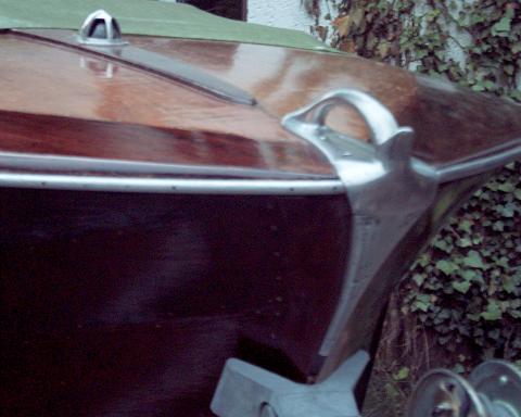 Bild 2) Das gleiche Boot von vorne. Man beachte den Bugbeschlag und die steile Scheibe.