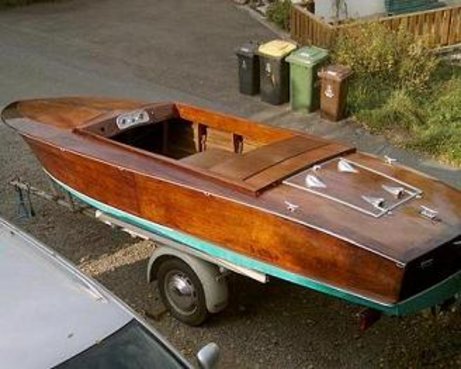 Diese Seddin ist von 1962, in Mahagonisperrholz gebaut, 5,8 m lang, P 70-Motor ohne Wendegetriebe, Tourenbootausstattung mit Schrank und Klapptisch.