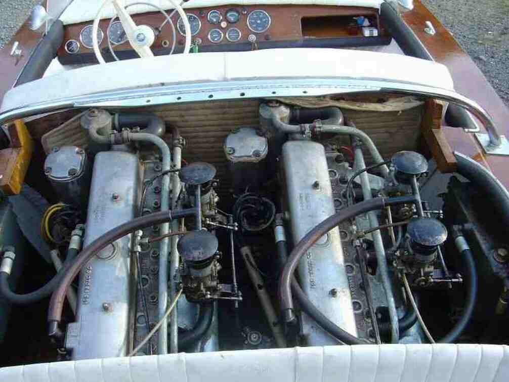 Dieses Boot ist mit zwei Maschinen von Sachsenring mehr... ausgestattet, Typ OM6 6-Zylinder. Dazu jeweils 2 Doppelvergaseranlagen, 2 Edelstahlpropeller, 2 Ruderanlagen, 2 Wendegetriebe.