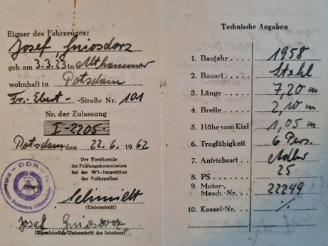 Diese Mittelkajüte wurde 1958 bei Lachmann gebaut. Angetrieben wird sie von einem Adler 25 Motor mit Konusgetriebe.