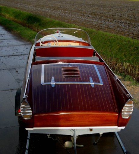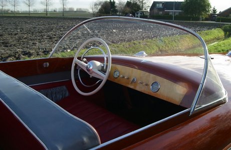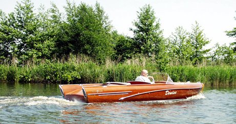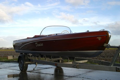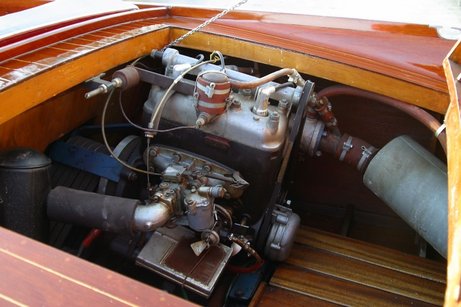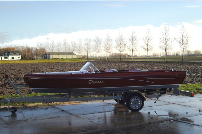 Von diesem Modell sind mehrere Boote gebaut worden, aber diese 617 mit dem Namen "Denise" ist das einzige mit dem 45-PS-Wartburgmotor. Interessanterweise sitzt dieser nicht mittig im Heck, sondern steuerbords und ist rückwarts eingebaut. Damit kann er eine im kleinen Winkel angestellte Propellerwelle haben, die mit sieben (!) Keilriemen vom Motor angetrieben wird.