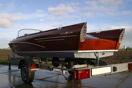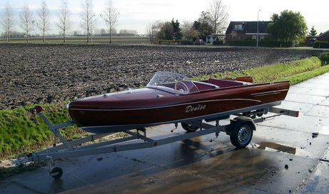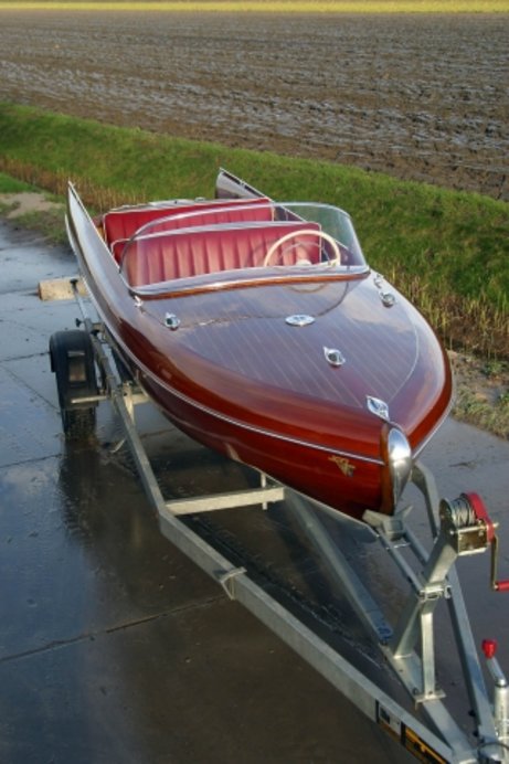 Die Höchstgeschwindigkeit dieses Boots beträgt 42km/h. Länge ca. 5,50 m, Breite 1,40 m.