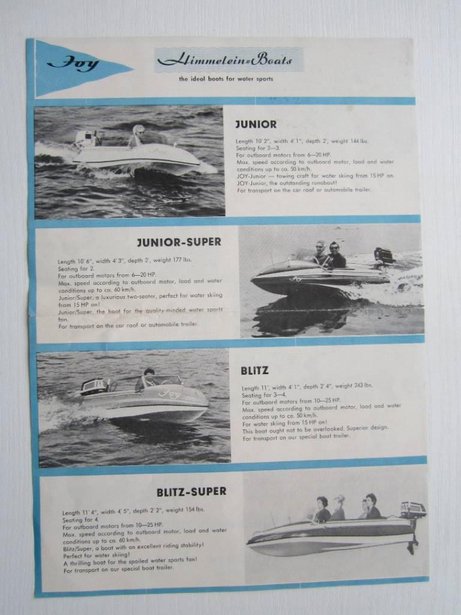 Diese Serie bestand aus sechs Modellen, die durch außergewöhnliches Styling und Fahreigenschaften auffielen. Jedes Modell war in zwei Ausführungen erhältlich: als Standard-Version und als Super Deluxe-Version mit zusätzlicher Ausstattung wie einer mehrfarbigen Lackierung, Beleuchtung und Instrumenten. Das erste Boot dieser Serie, das Joy-Junior, wurde 1958 eingeführt. Weitere Modelle wie der Blitz, der Moby-Dick, die De Lux, der Pinguin und das Allround Dinghy folgten kurz darauf.