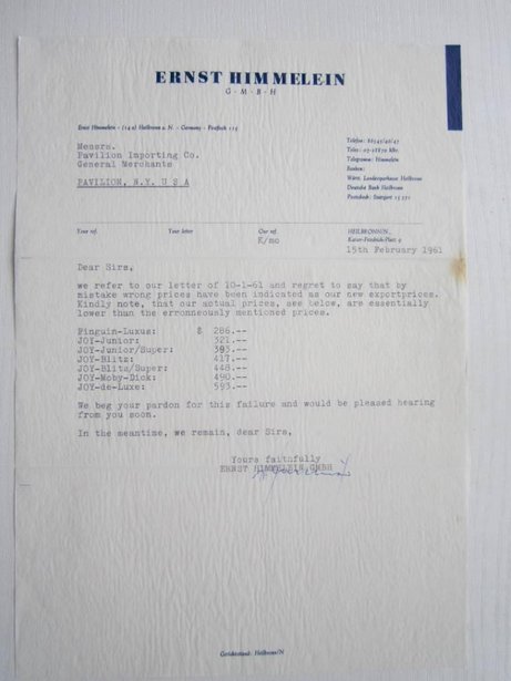 Im Jahr 1980 wurde das Unternehmen schließlich aufgelöst. Die genaue Anzahl der von Himmelein produzierten Boote ist unbekannt. Dank einer Entdeckung im Juli 2023 durch Stefan Tangermann, der Luftfrachtbriefe von Himmelein aus dem Jahr 1961 ersteigerte, sind nun einige historische Dokumente und Prospekte in englischer Sprache erhalten geblieben.