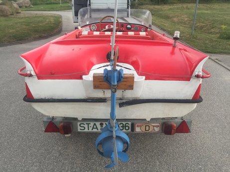 Angetrieben wird es von einem E-Motor im Heck. Dieser E-Motor treibt den Außenborder über eine Welle an.