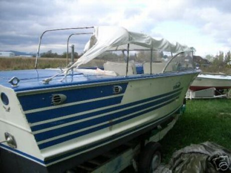 Von diesem Typ wurden nur 4 Stück bei Guggisberg in Arch (CH) gebaut. Baujahr 1966, Länge 5,80 m, Breite 1,95 m, Zulassung für 6 Personen, Motor OMC 150, Z-Antrieb.