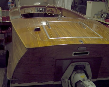 Ihr Boot wurde durch meinen Vater 1964/65 gebaut. Die Schale ist nach einem damals neuen Patent mit verleimten Hohlkehl-Leisten aufgebaut. Der ursprüngliche Motor war der damals erste Z-Antrieb von OMC, Typ 480. Es handelte sich um einen liegenden V4 2-Takt 80 PS Motor mit automatischer Oelzumischung, wie er damals auch als Aussenbordmotor verwendet wurde. Die Sitze haben wir selbst gebaut und durch unseren Dorfsattler konfektionieren lassen. Ingesamt wurden zwei dieser Boote gebaut. Ich hoffe, Ihnen gedient zu haben und wünsche Ihnen mit dem Boot aus den Händen von Bootbaumeister und Fachlehrer Willi Infanger (gest. 1976) viel Vergnügen.