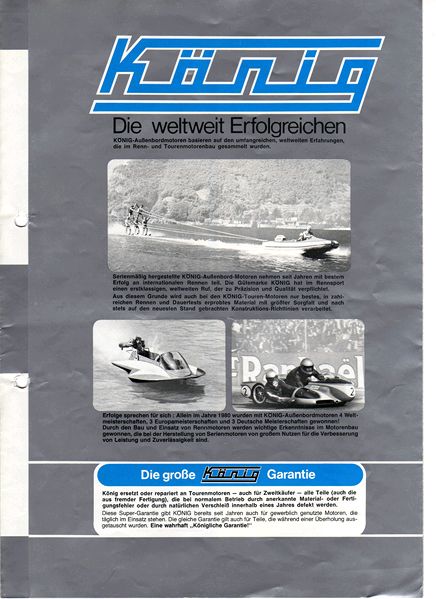Im Jahre 1927 gründete Rudolf König seine Außenbordmotoren-Firma. Weltweit berühmt wird die Firma durch den Sohn Dieter.