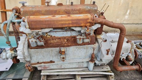 Der Selve Bootsmotor stammt aus dem Autoboot Hecht, das sich in der Restauration befindet. Der Motor wurde bereits überholt, das Bild zeigt den Motor nach Ausbau.