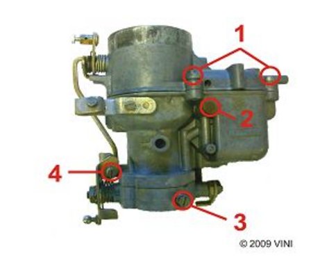 Durch leichtes Anziehen der Leerlaufbegrenzungsschraube kann man die Motordrehzahl einstellen. Danach ist die Leerlaufgemischregulierungsschraube bis zum Anschlag hinein zu drehen (locker und nicht fest ziehen) und dann um eine volle Umdrehung zu öffnen.